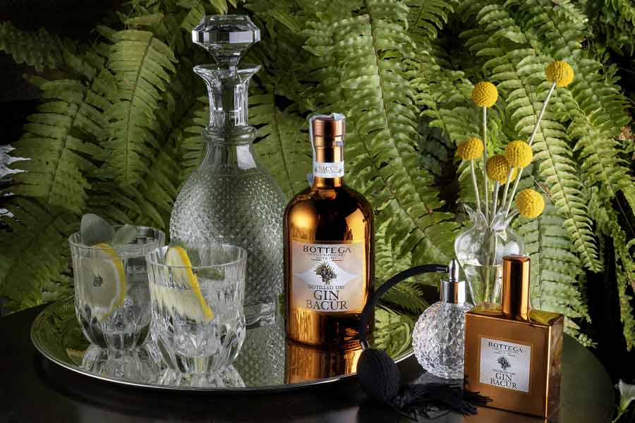 The original copper bottle is made with an exclusive metallization process, thanks to which the copper color becomes an integral part of the external surface of the glass. Bottega has been expanding its range of distillates for five years, entering the gin market. The Treviso-based company has therefore bet on the potential of this product which, thanks to Gin and Tonic and mixed drinks in general, has become a cornerstone of consumption in the main trendy clubs. Bottega boasts a three-generation tradition in the field of grappa distillation. The introduction of some technological innovations, such as vacuum distillation, the reduction of the alcohol content and the use of a third passage in a demethylating column, have always given a new vitality to our flagship brandy, always in the name of tradition. The same production philosophy has also been extended to gin and has resulted in the creation of a soft and highly aromatic distillate. Gin Bacûr Bottega is a Distilled Dry Gin, which develops an alcohol content of 40% vol. It is characterized by the use of botanicals of certified origin: juniper berries (Tuscany), sage (Veneto) and lemon peel (Sicily). Its quality and complexity depend not only on the number of plants, but also on the extraction conditions of the aromatic components of each of them. It is suitable for preparing cocktails of various types, including the timeless Gin Tonic. This is the recipe: 40 ml Gin Bacûr, 80 ml tonic water, half a slice of lemon, juniper berries (or sage or mint), ice cubes. Preparation. Cool the glass. Pour Gin Bacûr. Add ice, a lemon wedge, juniper berries, a sage or mint leaf, tonic water. Mix well before serving. The term Bacûr, of pre-Hellenic derivation, was formerly used to indicate copper. The retail price of Gin Bacûr Bottega 50 cl is around 24 euros. It is also available in a 70 cl bottle, a liter bottle, a 5 cl mignon bottle and a 10 cl spray version.